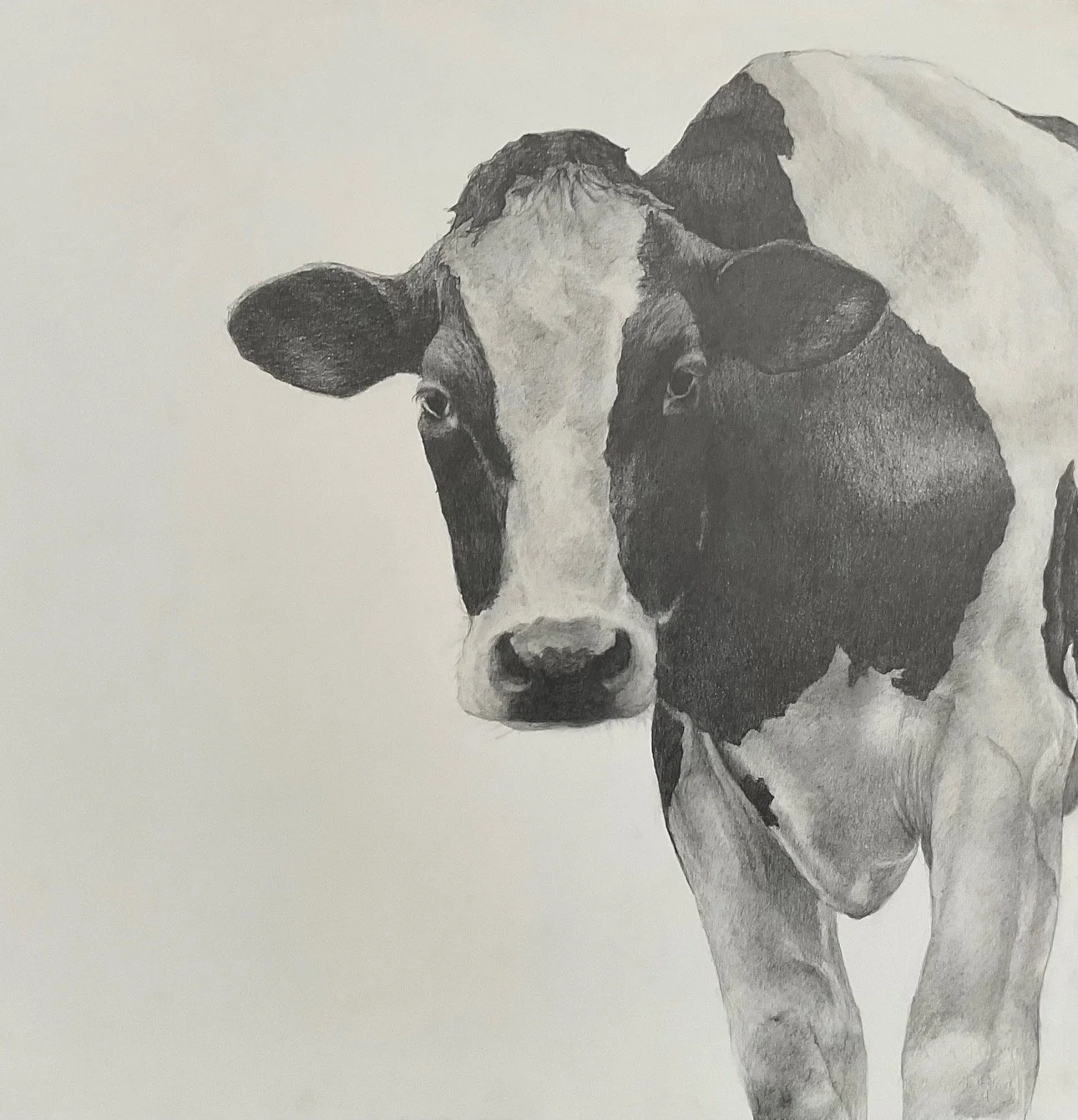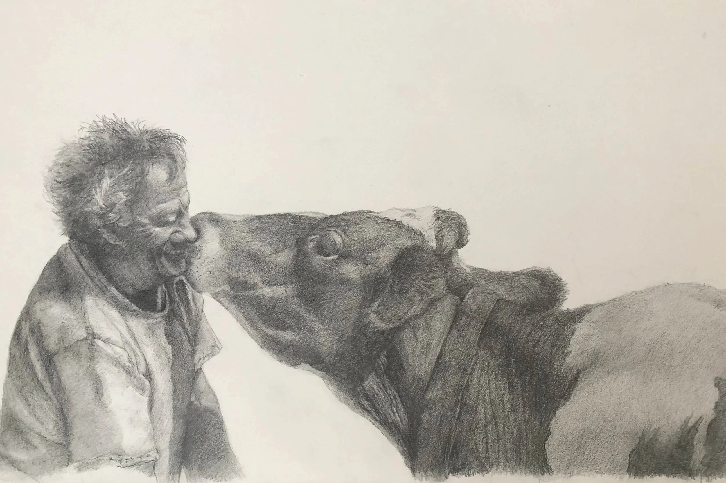 The gentle and giving nature of the dairy cow is what I strive to bring forth in this series of drawings. I urge the viewer to look beyond the image of the cow and reflect on all we have gained from its presence, and all we stand to lose with the passing of our small dairy farms.
